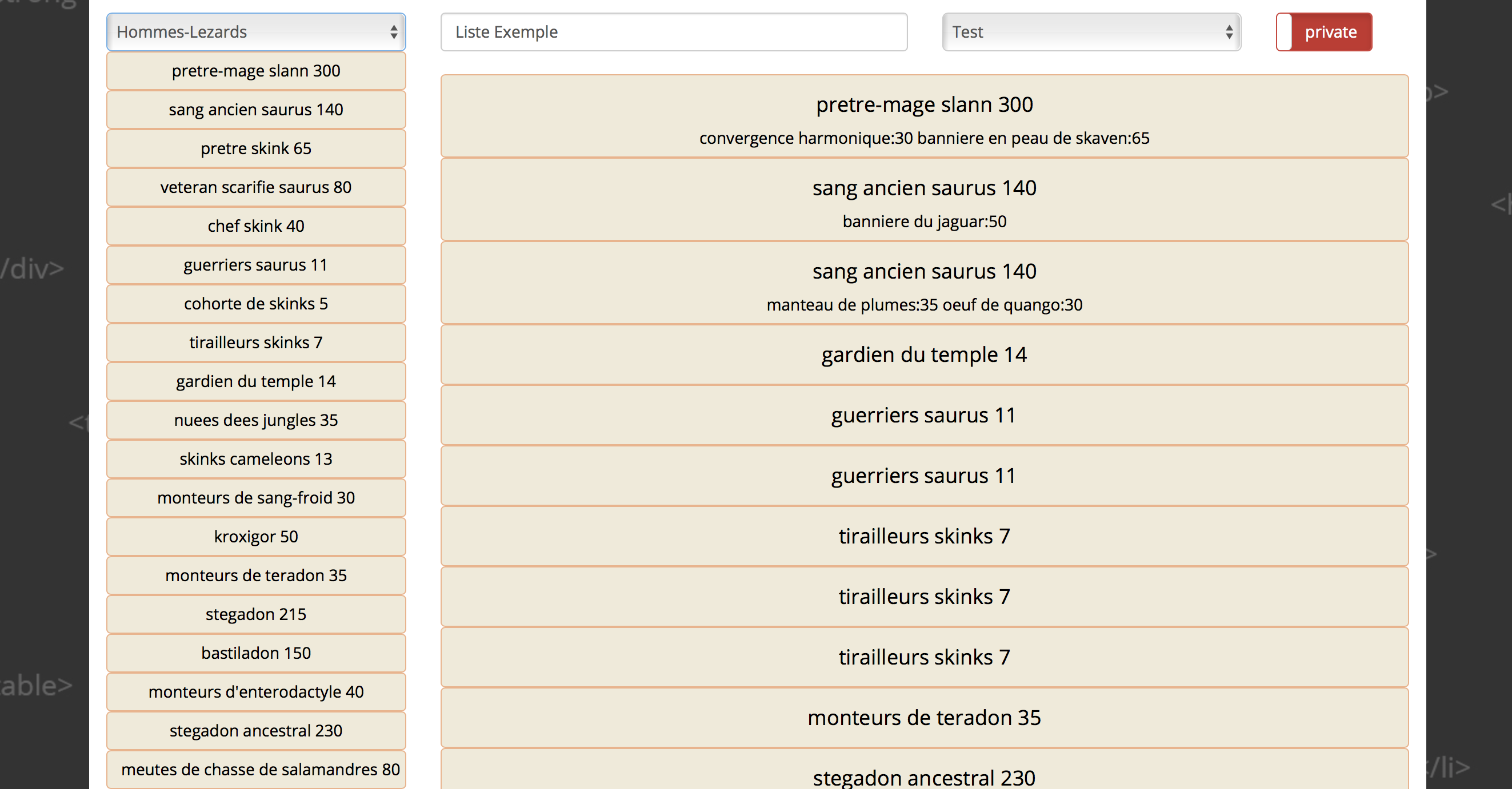 Demande d'un outil de list builder pour un jeu de figurine, j'ai donc fait ce test sur la base du jeu Warhammer pour voir si cela m'était possible